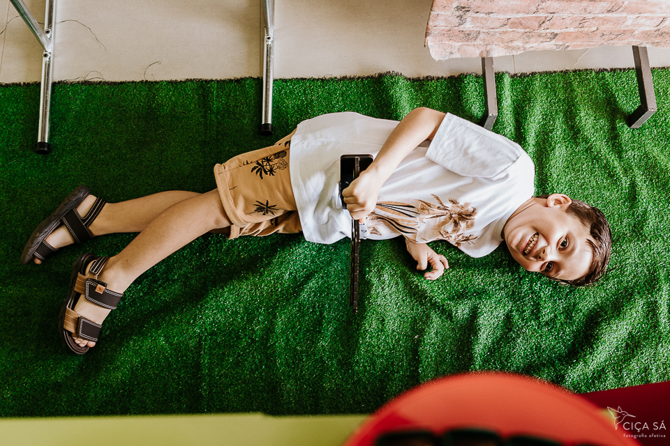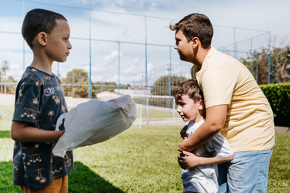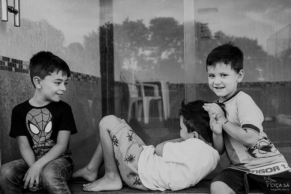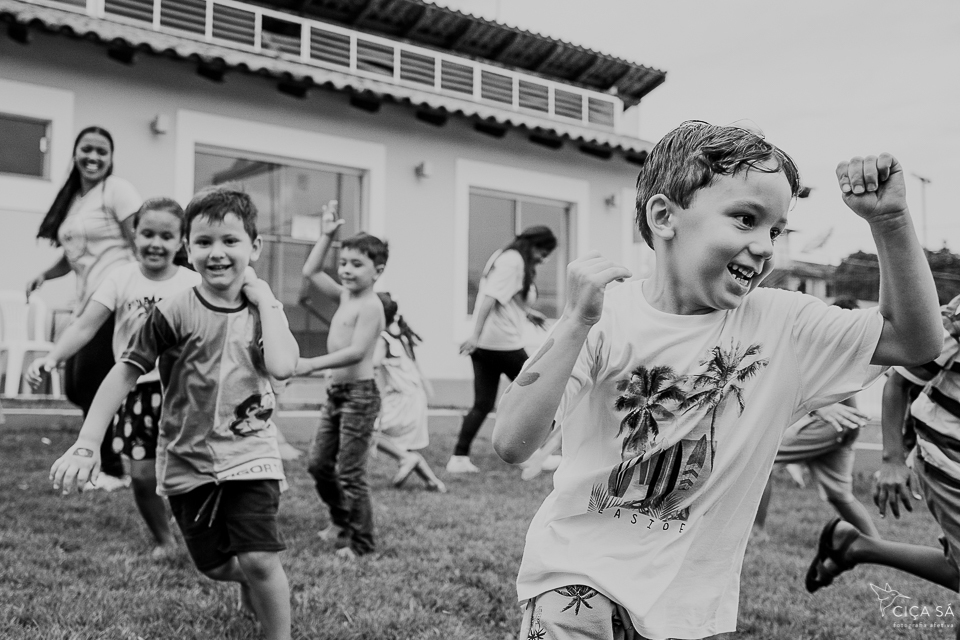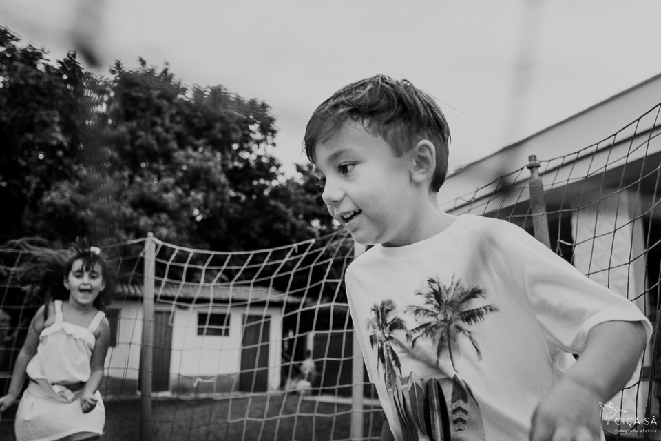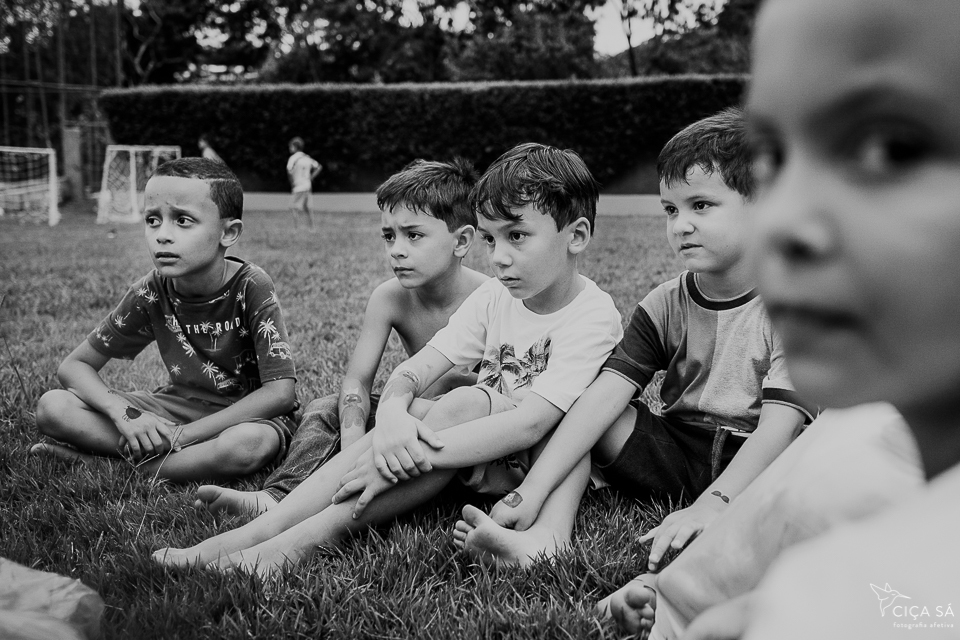 Depois deste devaneio preliminar, digo que observar o Heitor em seu aniversário de seis anos junto com sua família e seus amigos, correndo "praqui e pralí" é um exercício para os olhos, para o corpo (foca, clica, enquadra, empunha a câmera, baixa a câmera, agacha, levanta, um olho no gato o outro no peixe e por aí vai), para o cérebro, para o espírito. Presenciar as pessoas em suas relações, as crianças, de forma especial, apenas sendo crianças, com todas as suas vontades mais puras e sua lealdade a essas vontades... Cócegas pro meu coração bobo.