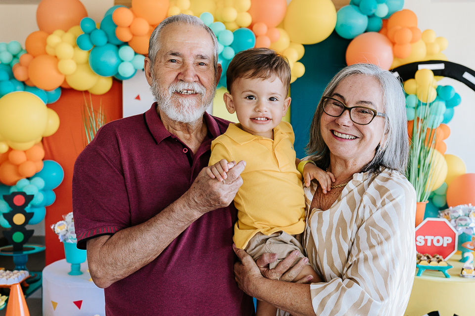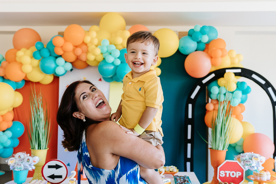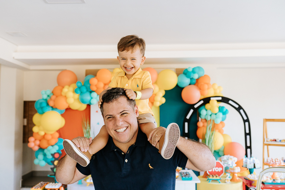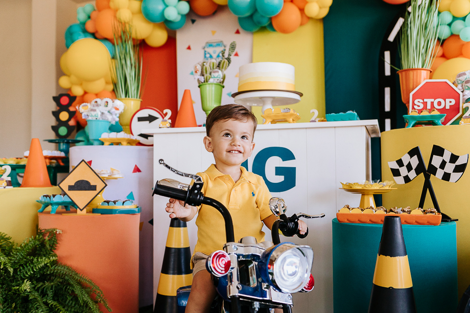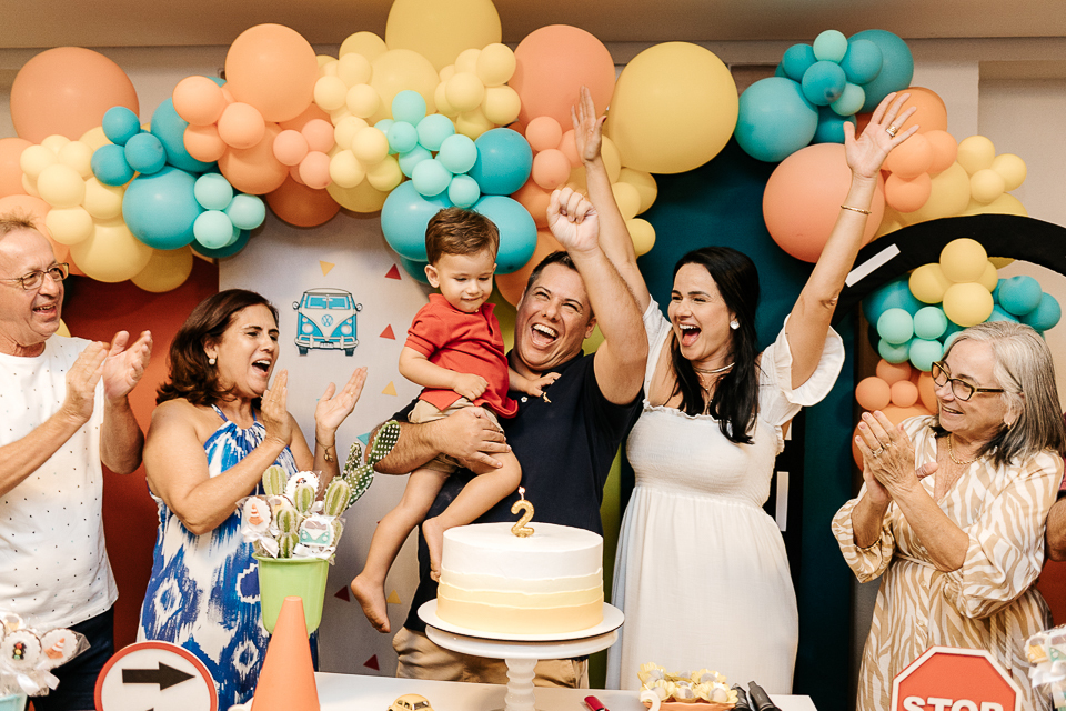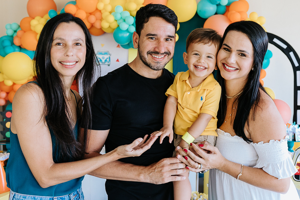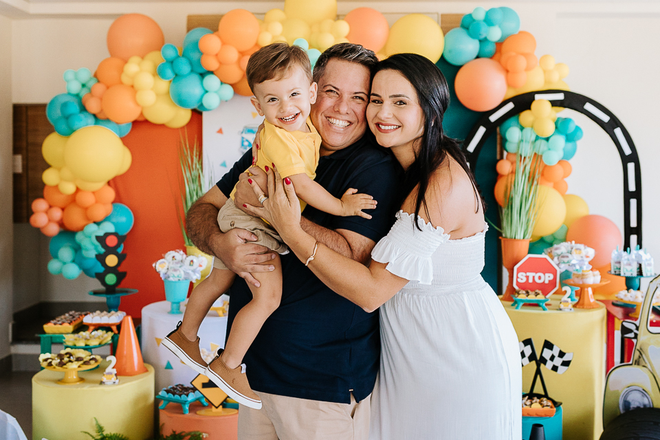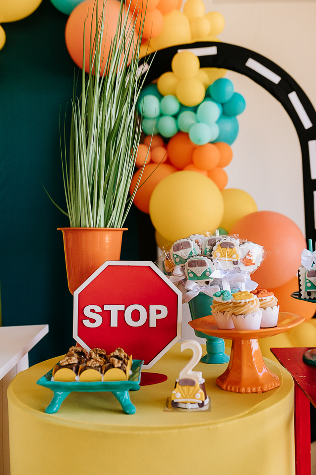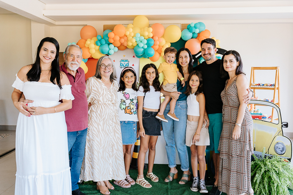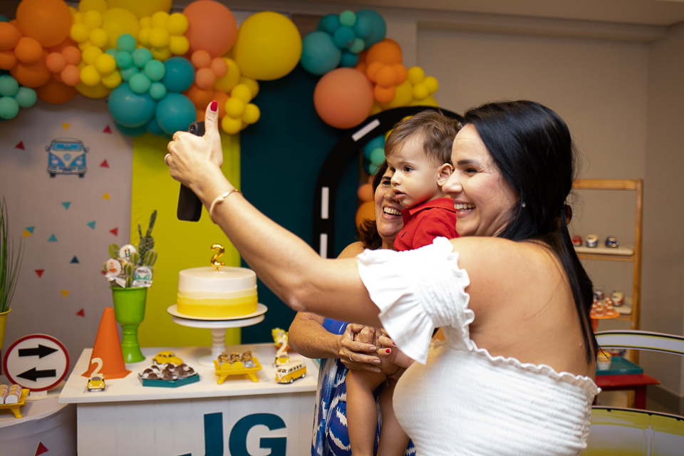 Com o tema fusca e kombi, que o pequeno ama, a decoração trouxe uma paleta bem interessante e uma nostalgia típica, mesmo para quem é tão pequeno ainda...