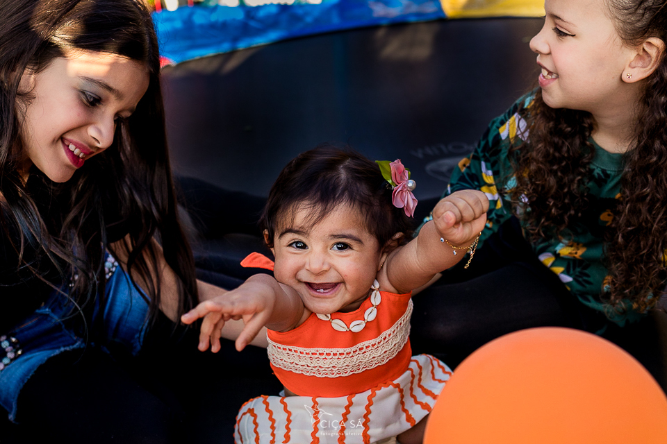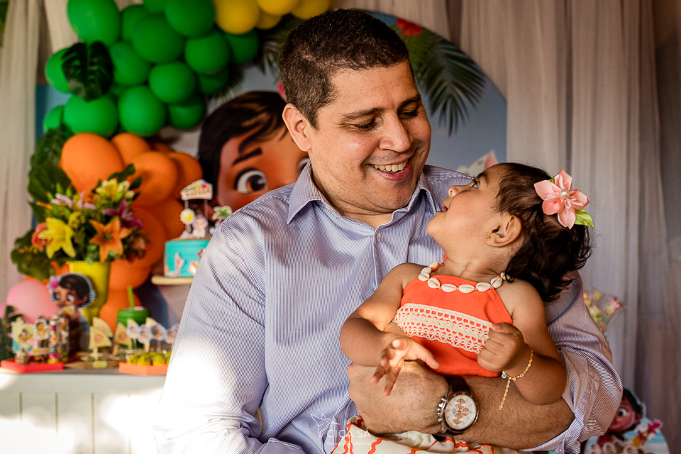 A alegria de todos a sua volta estava contagiante neste dia! A pequena, que coincidentemente guarda traços semelhantes a personagem Moana, estava a caráter, risonha e cheia de energia!