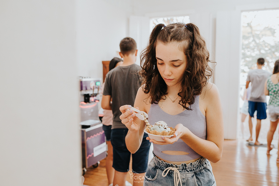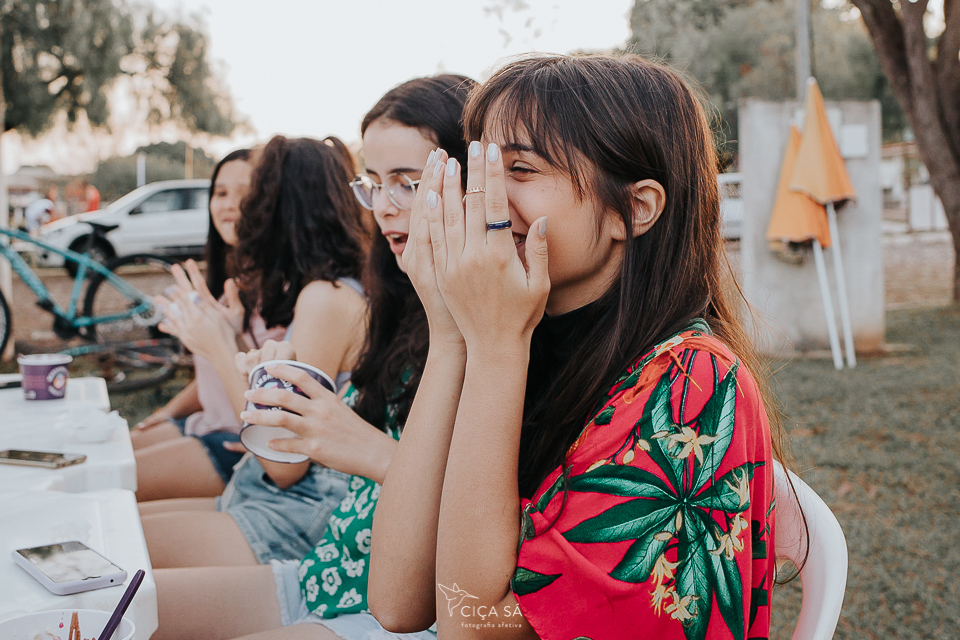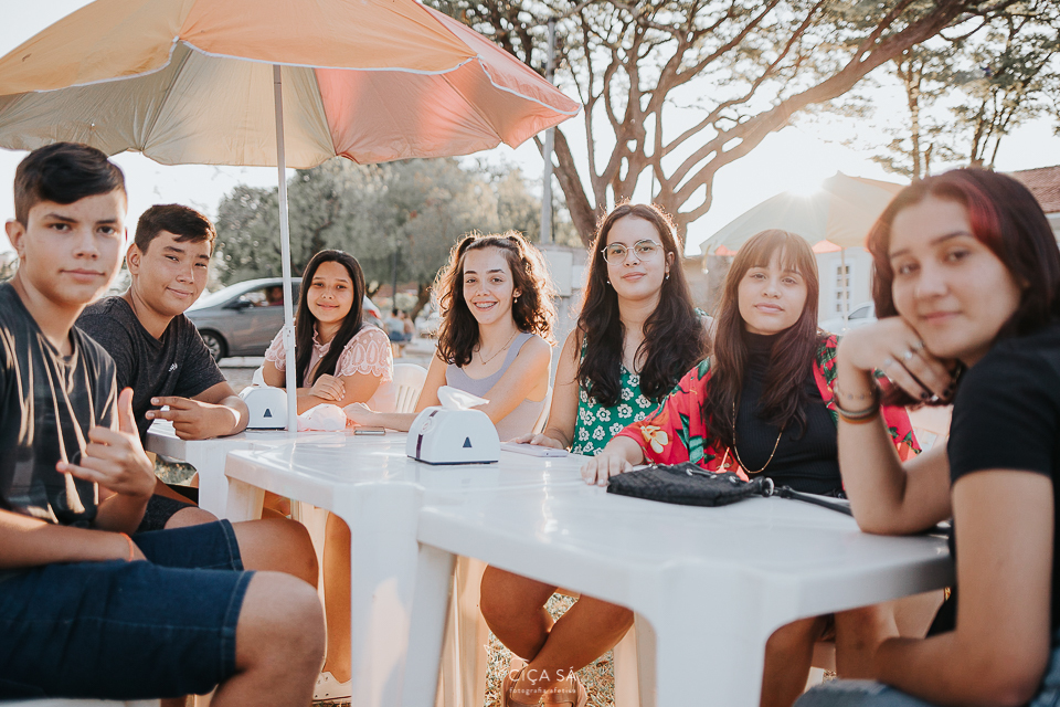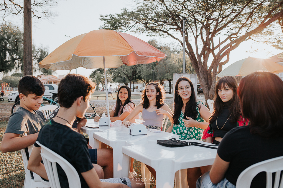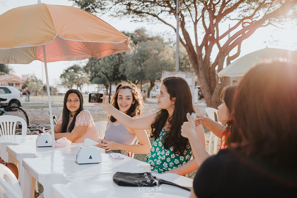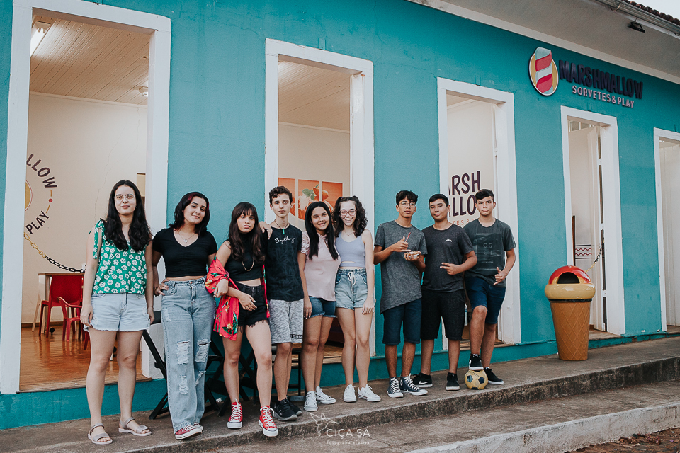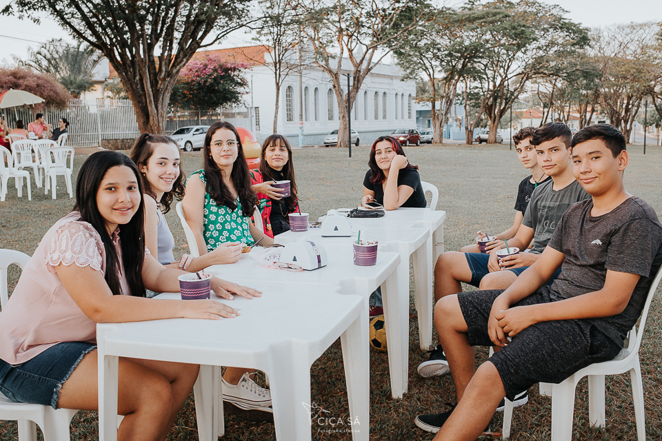 Eu, hoje adulta, sendo mãe de uma adolescente e circulando bem entre os integrantes dessa "faixa etária", fiquei um pouco hesitante no meio dessa turma específica, os amigos da Júlia, que foram comemorar com ela seu aniversário de 14 anos, na praça da sorveteria (ou na sorveteria da praça?).