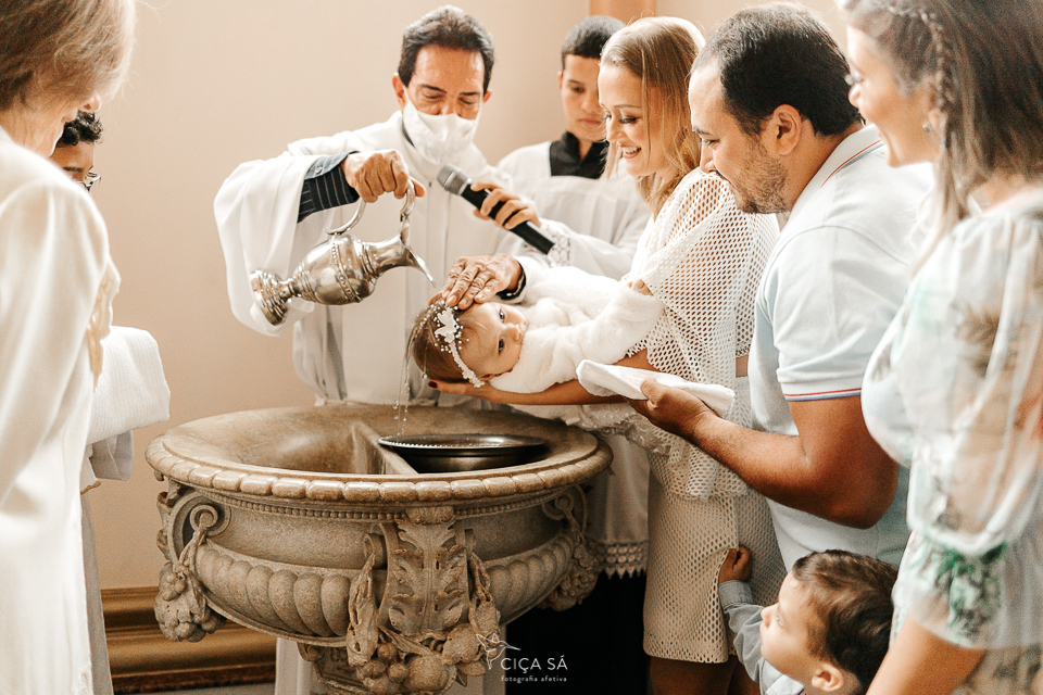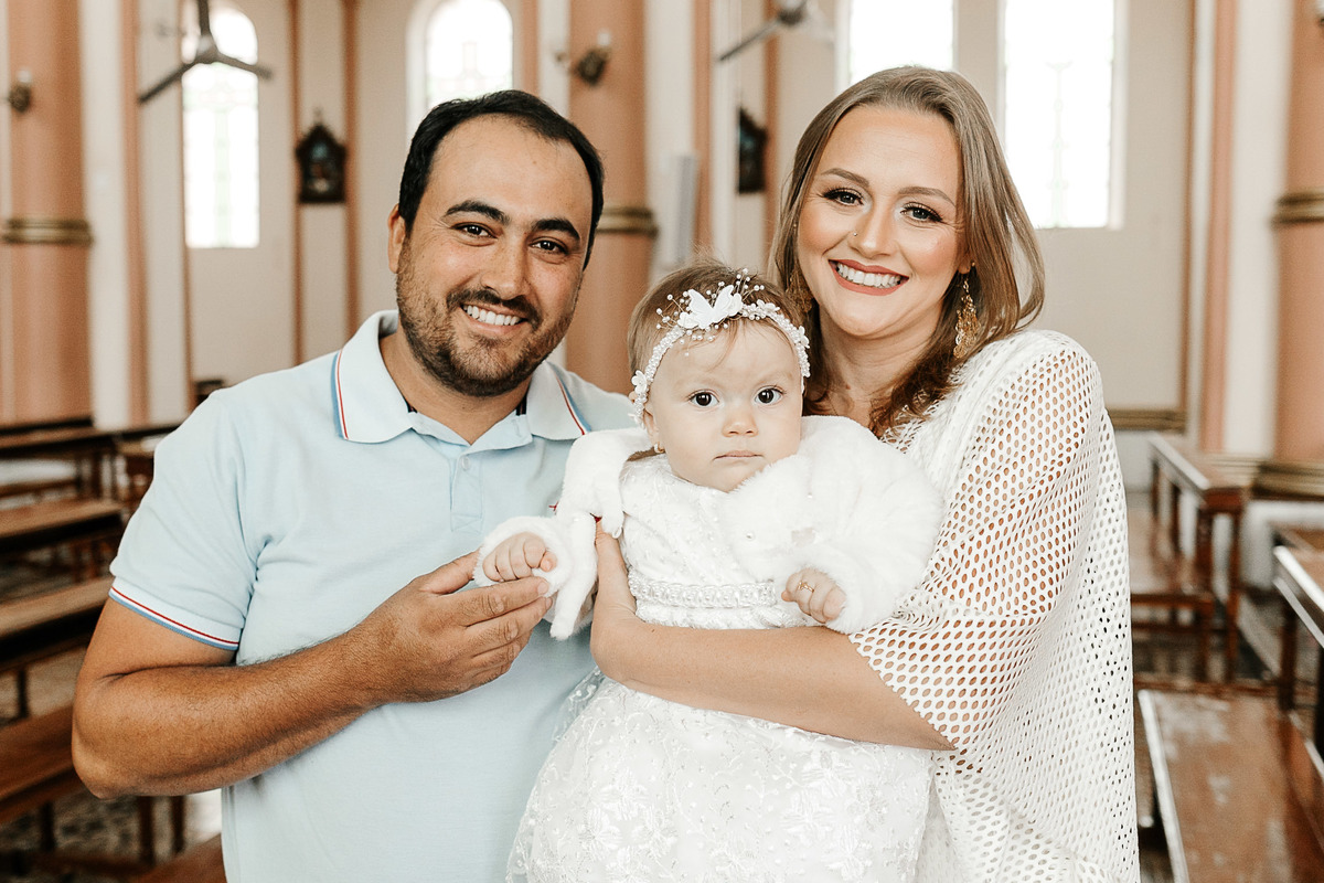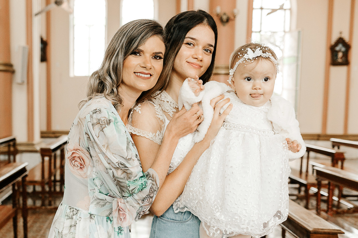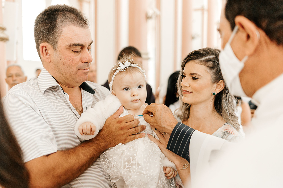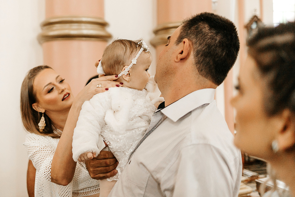 A pequena Maya foi batizada! Viva! Os pais e a família comemoram muito esse acontecimento, essa primeira bênção grandiosa, num rito muito especial.