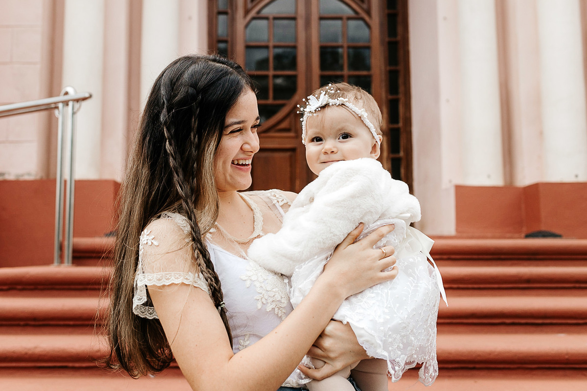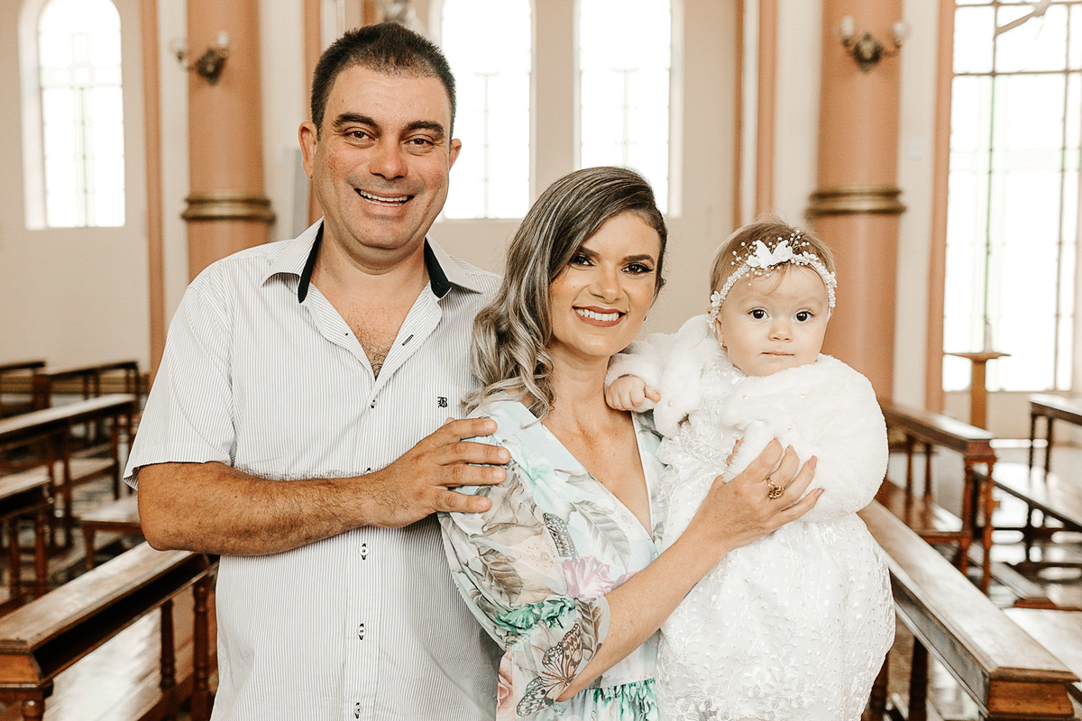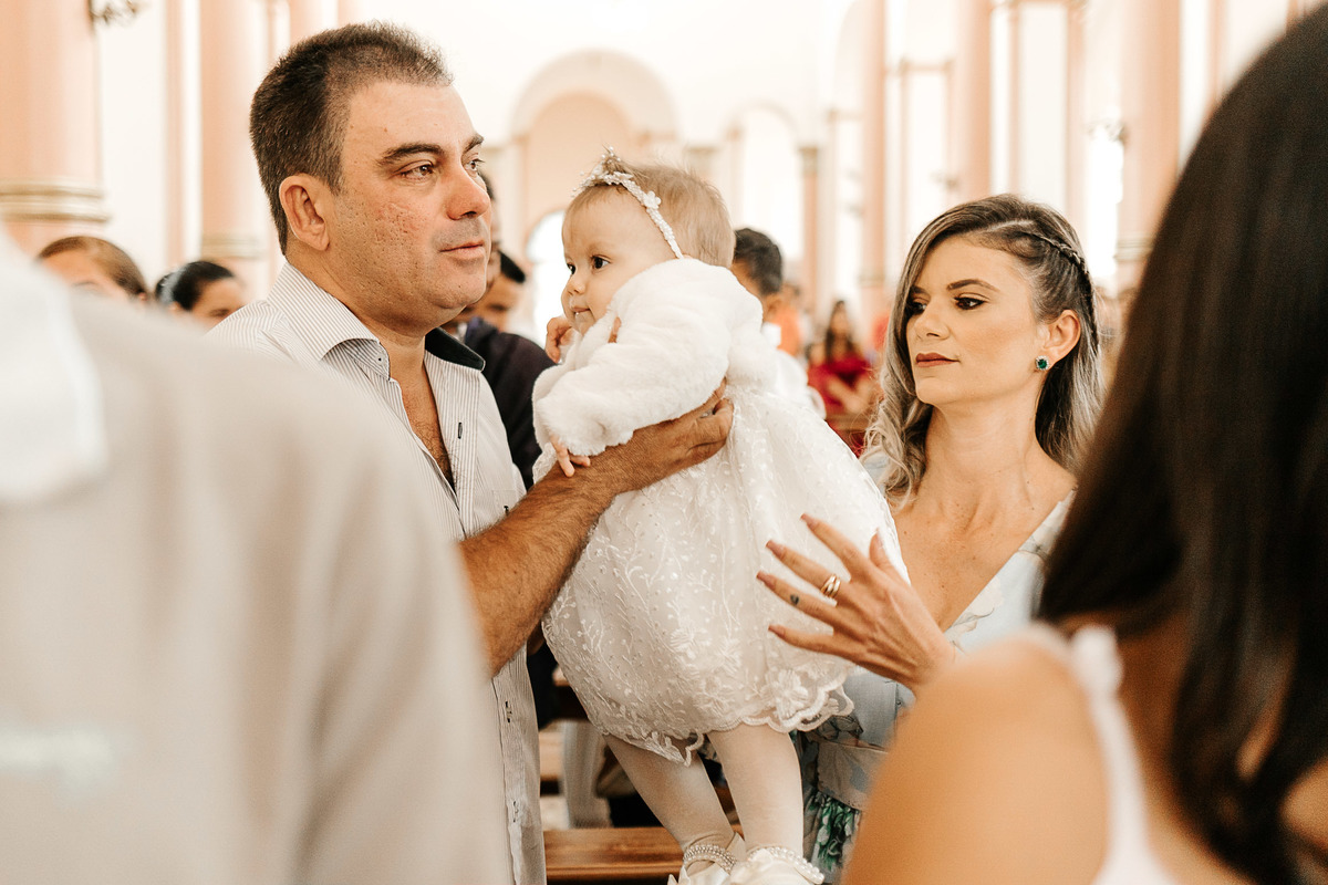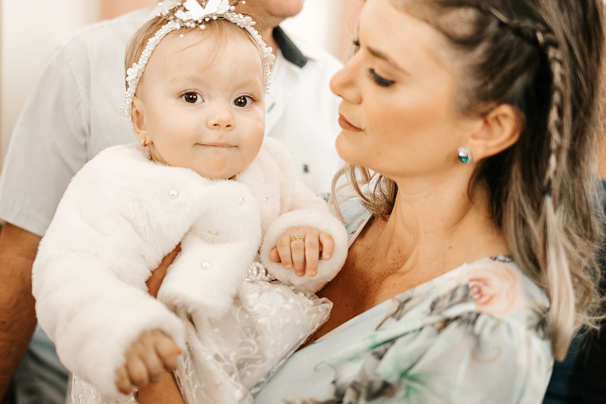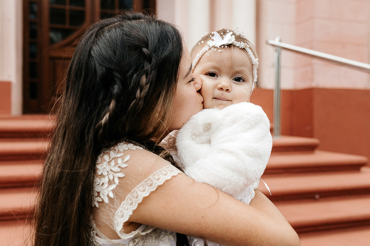 A pequena Maya foi batizada! Viva! Os pais e a família comemoram muito esse acontecimento, essa primeira bênção grandiosa, num rito muito especial.