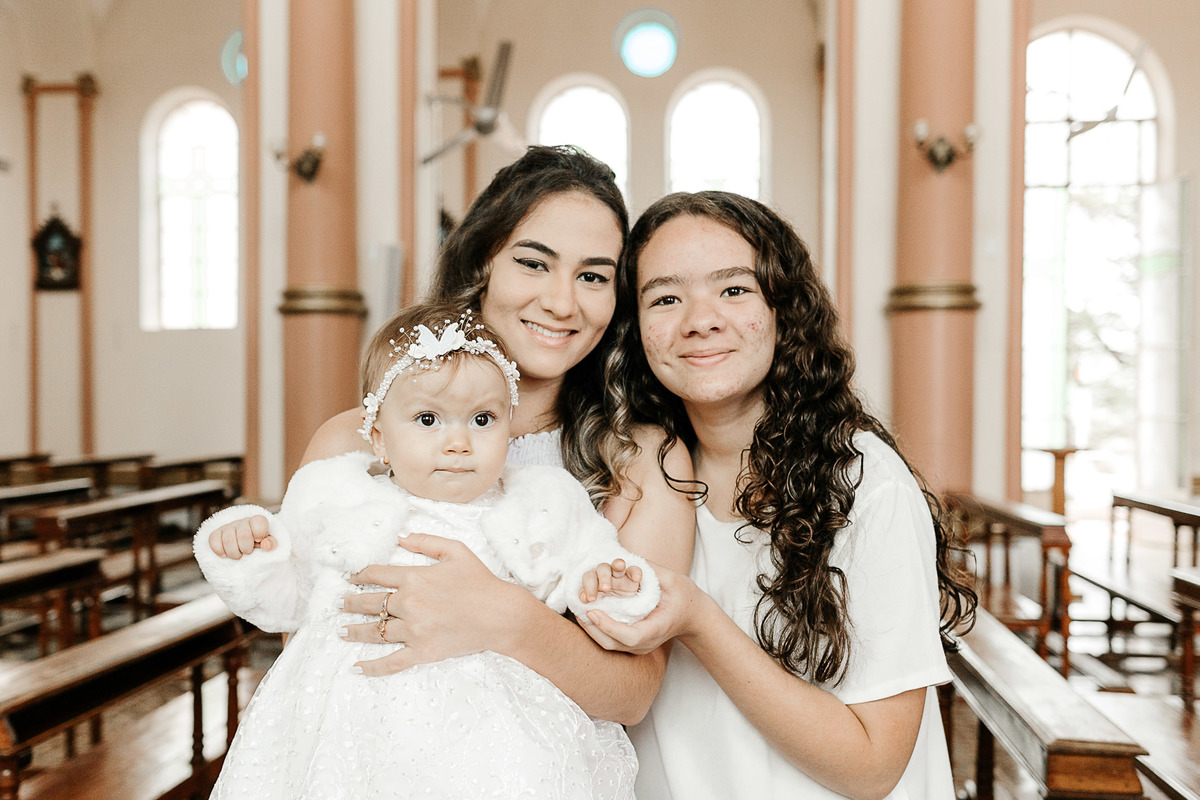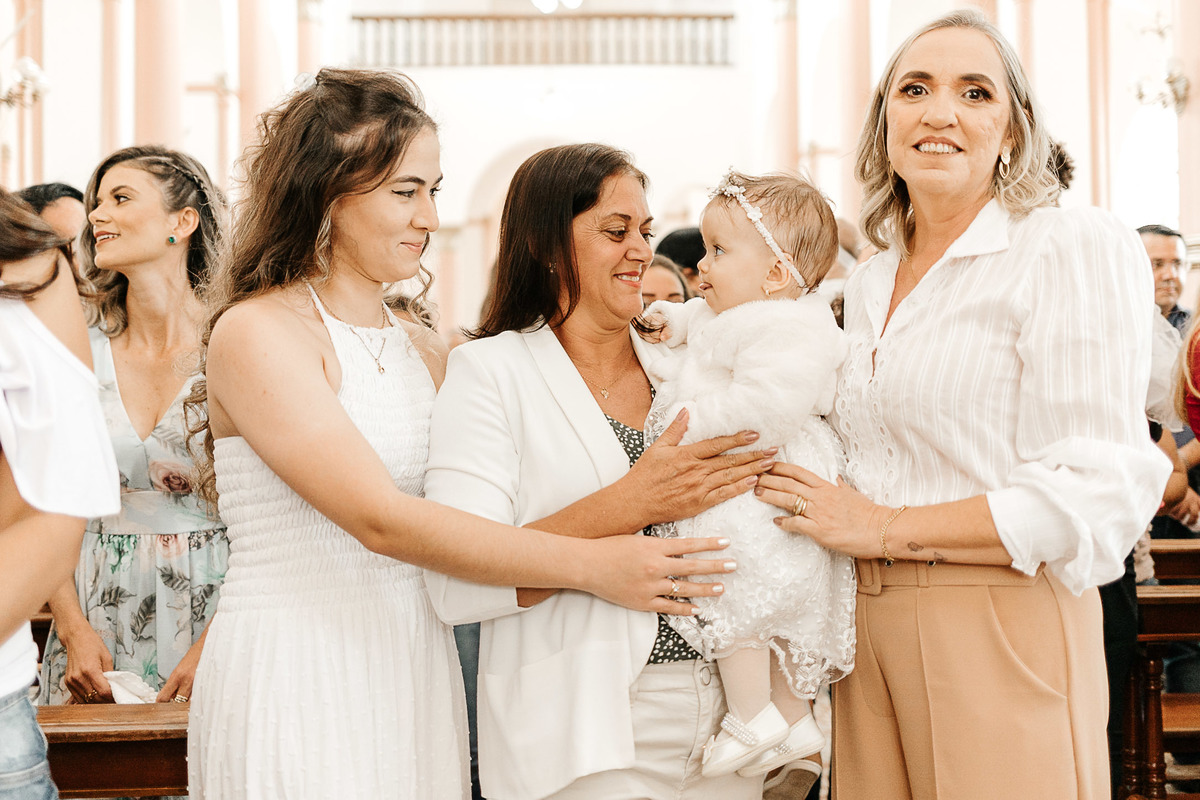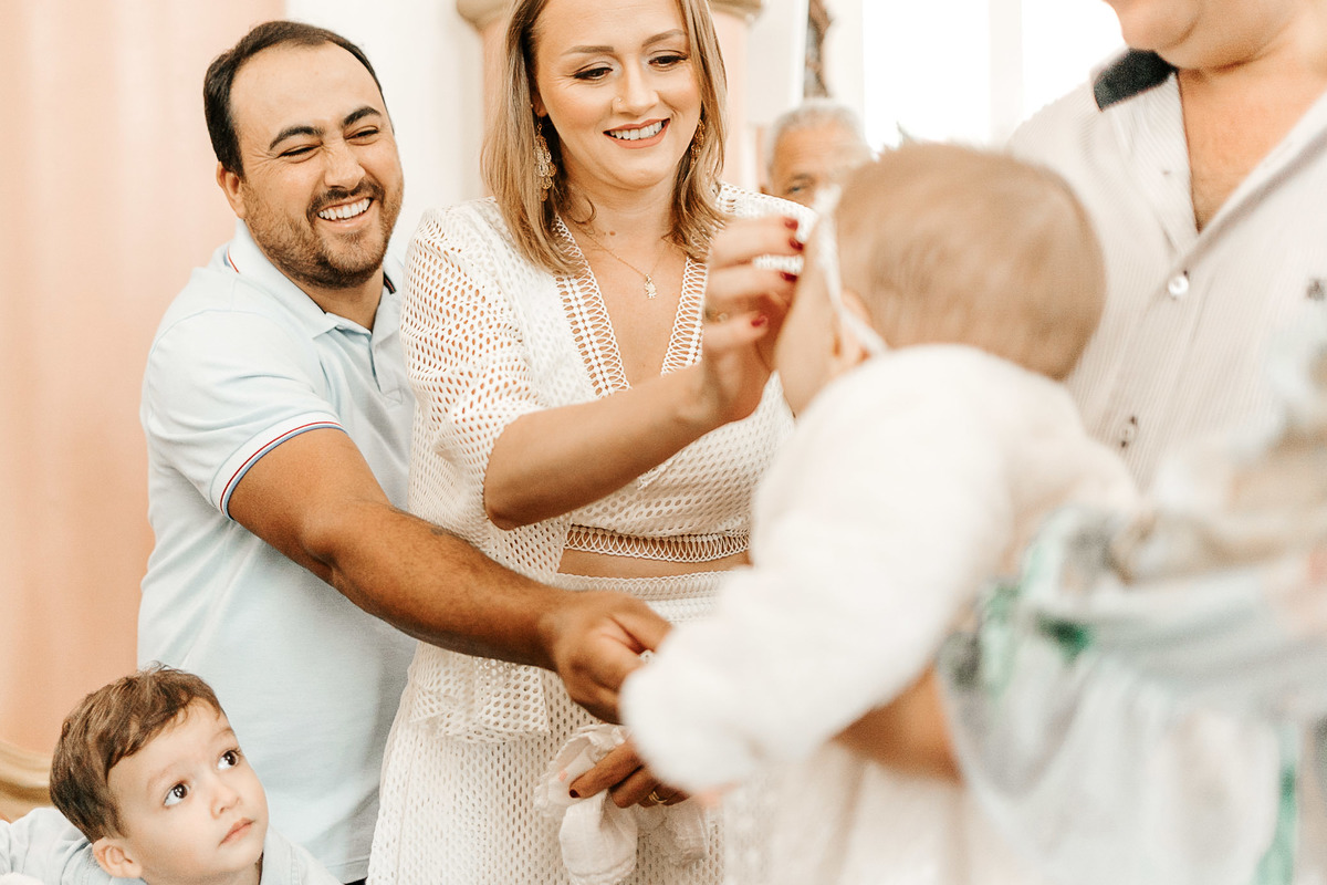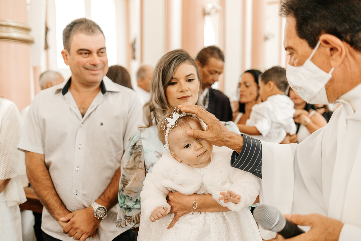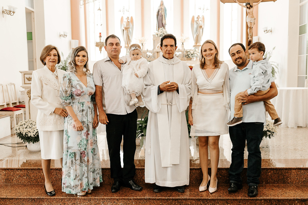 A pequena Maya foi batizada! Viva! Os pais e a família comemoram muito esse acontecimento, essa primeira bênção grandiosa, num rito muito especial.