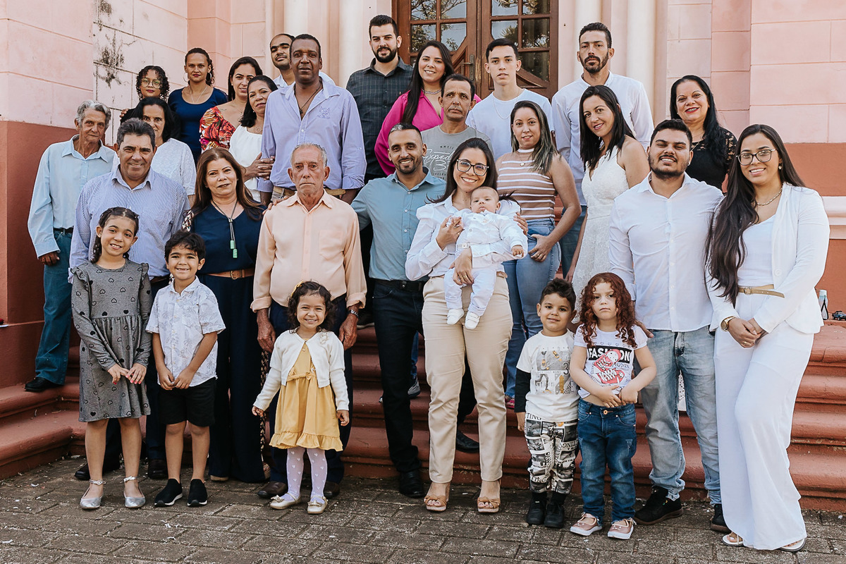Vovôs, vovós, madrinhas e padrinhos, família querida, irmãzinha companheira de vida, todos estavam ao seu redor neste dia inesquecível.