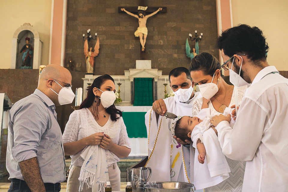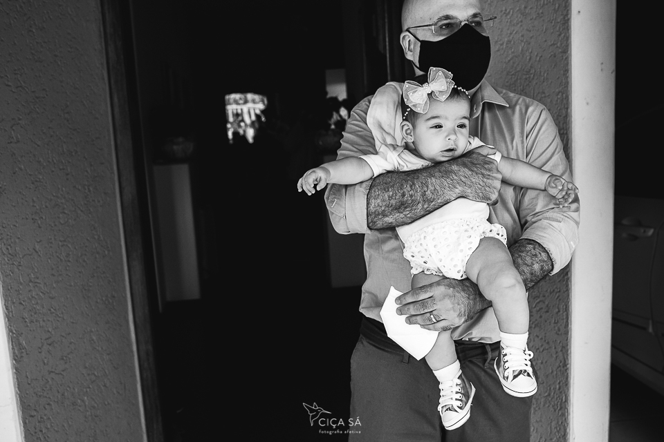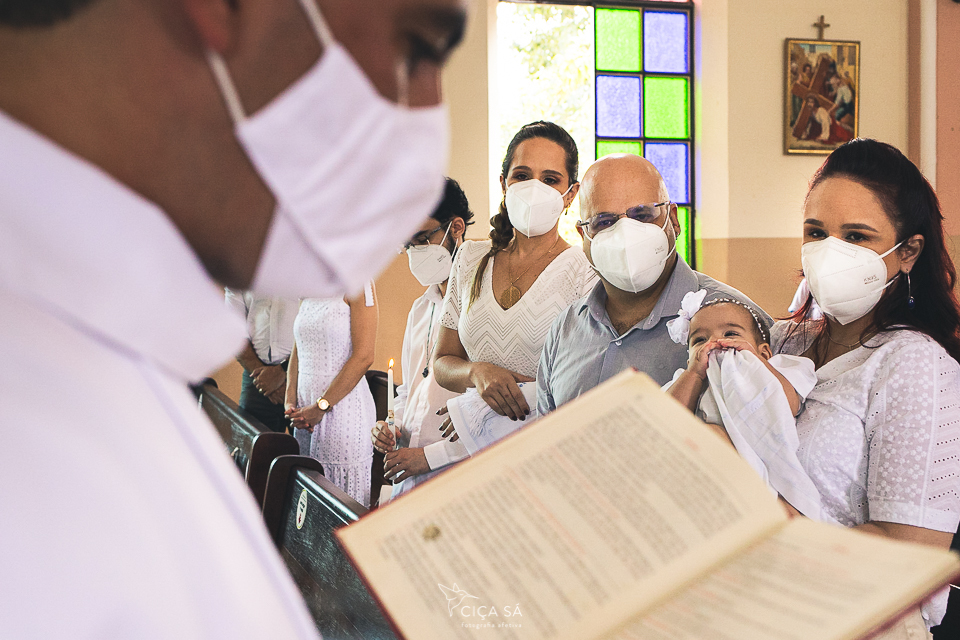 Em cerimônia íntima e devidamente adaptada a nossa nova realidade, Alice recebeu, além do sacramento primeiro da Igreja Católica, os carinhos de seus avós, tias corujas, seu padrinho-irmão e sua madrinha-só-amor.