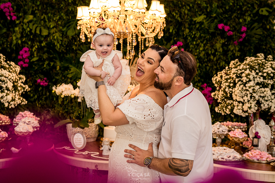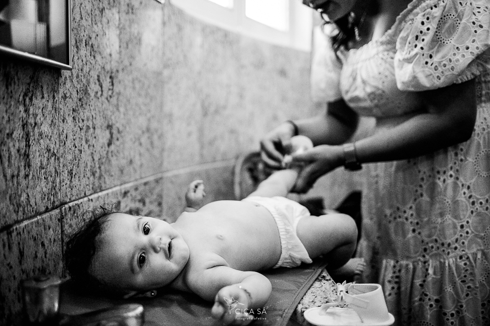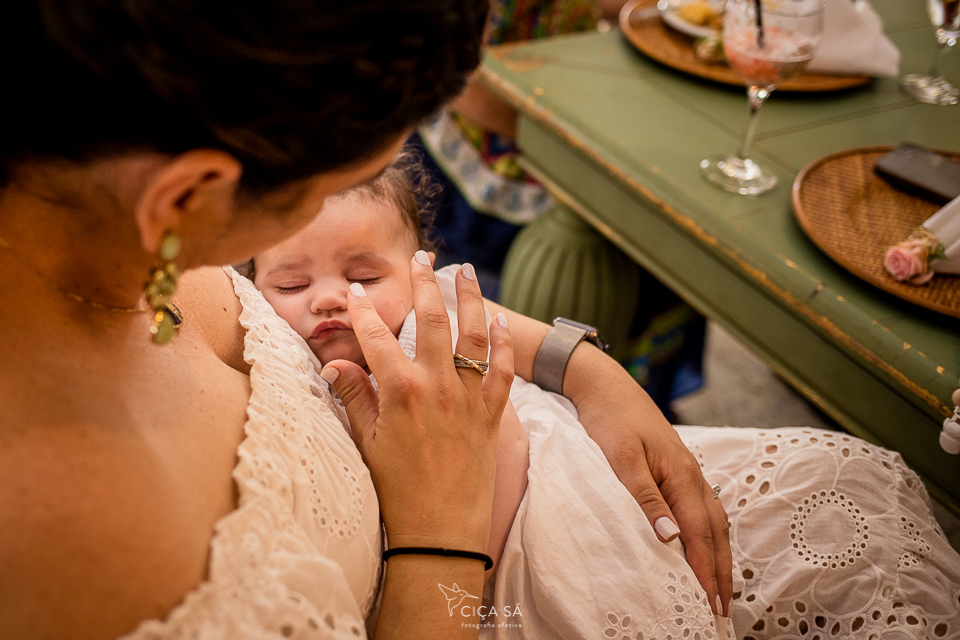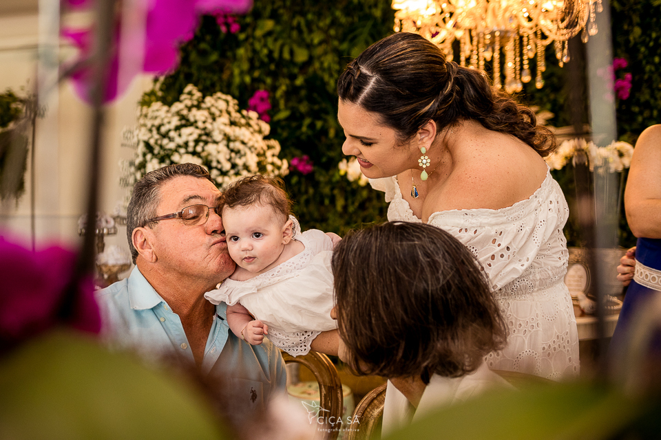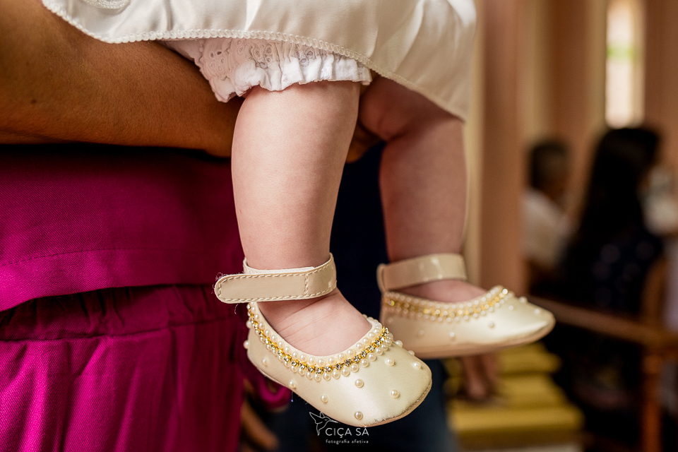 Sempre digo que contextualizar é importante, mas captar os detalhes também! A fachada da igreja e como é lindo seu interior são elementos que importam, sim... Eu, pelo menos, acredito que isso enriqueça a narrativa que as imagens contam. E os pormenores não podem faltar, claro que não! A alvura da Stella, o carinho com que seus pais a trazem, seu sapatinho e pulserinha e sandalinha, as mãos dos primos que afagam, a atenção dos padrinhos e do vovô, o esmero do buffet...