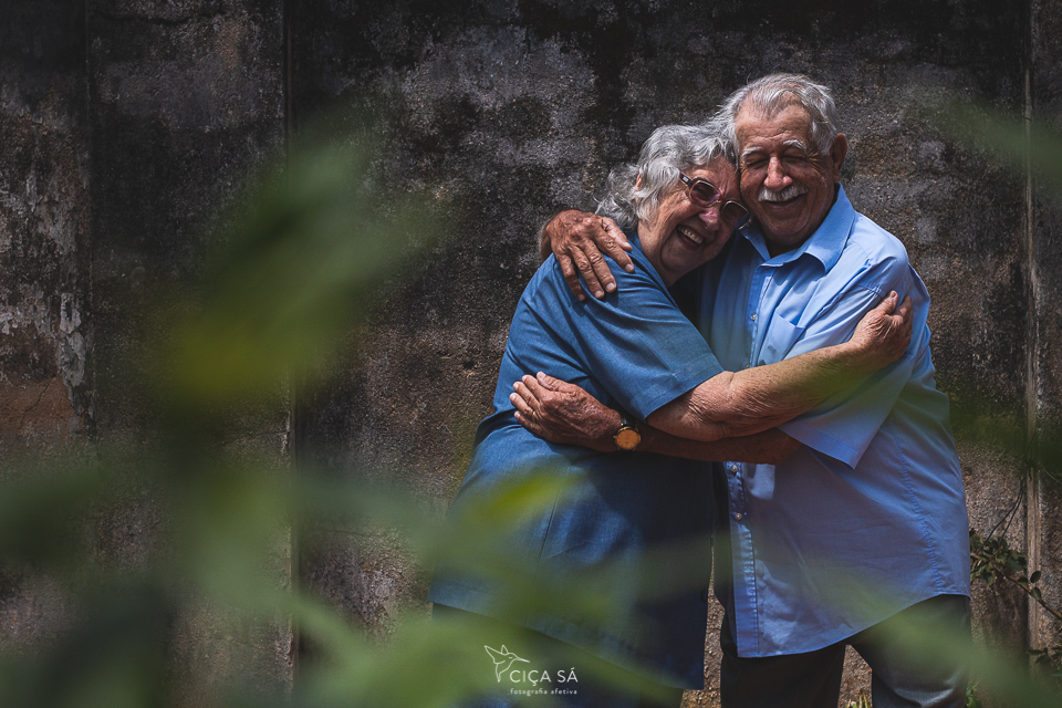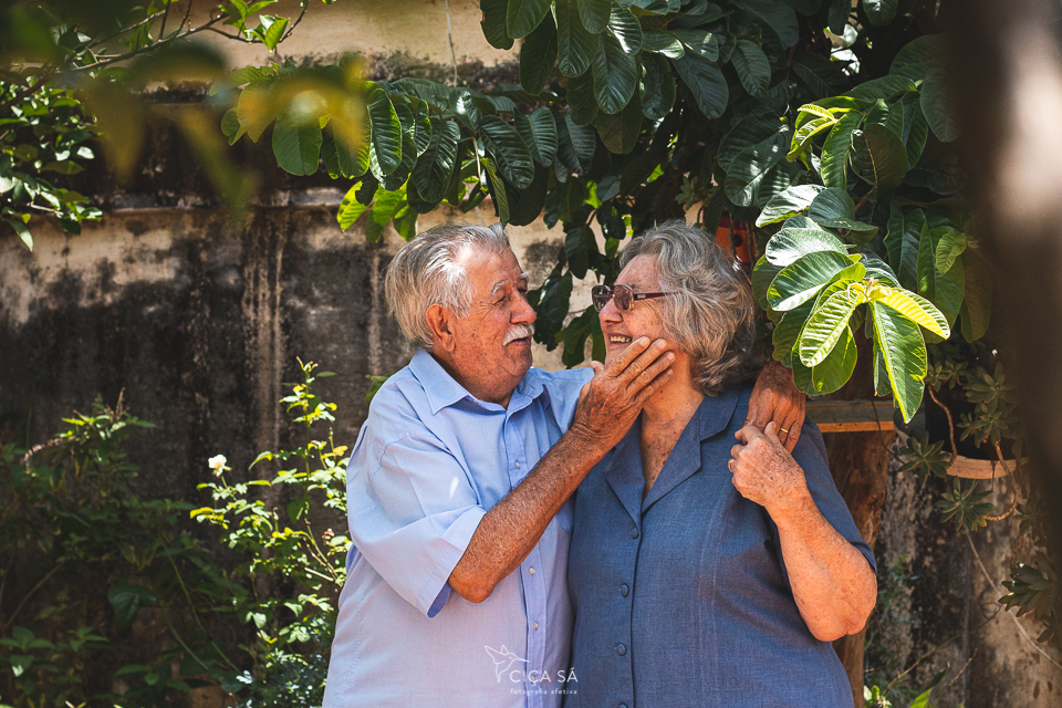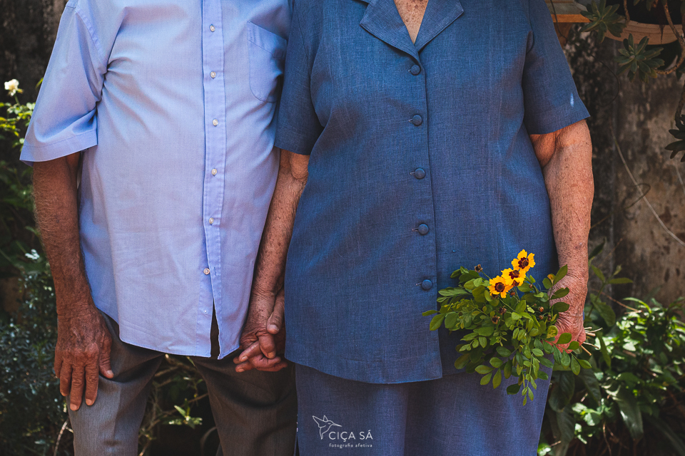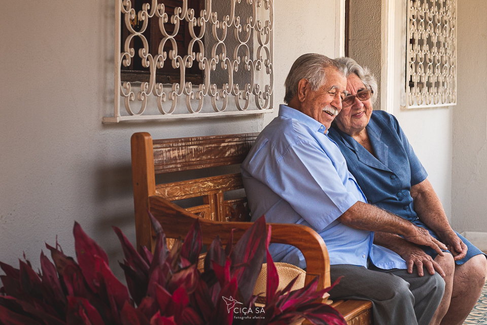 Concordaram em serem fotografados, num ensaio tranquilo, respeitoso, singelo e cheio de graça, ali mesmo, na linda casinha, no alpendre com ladrilhos hidráulicos e banco de madeira, no quintalzinho simples e muito bem cuidado, no sofá, na janela e sua luz amiga. Estou certa de que essa experiência de serem fotografados ficará para sempre em suas memórias, da mesma forma como ficou na minha.