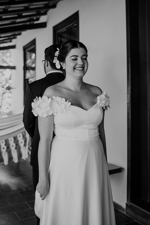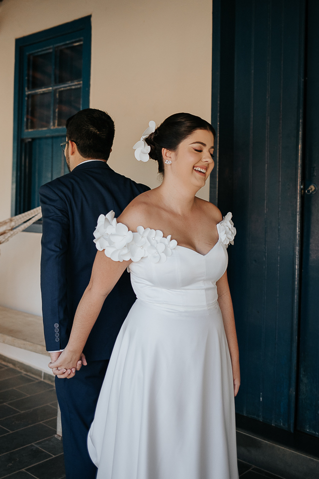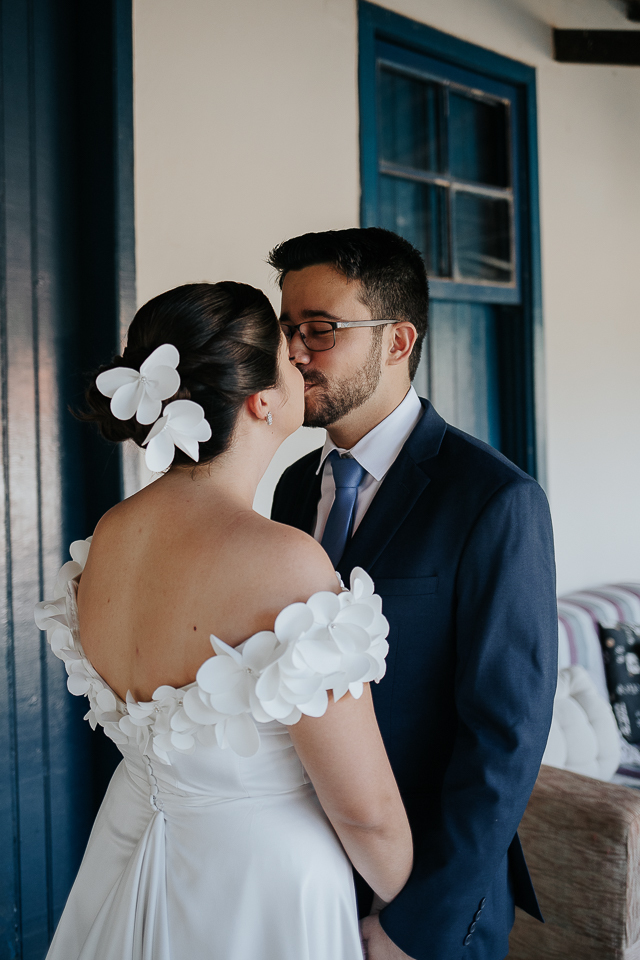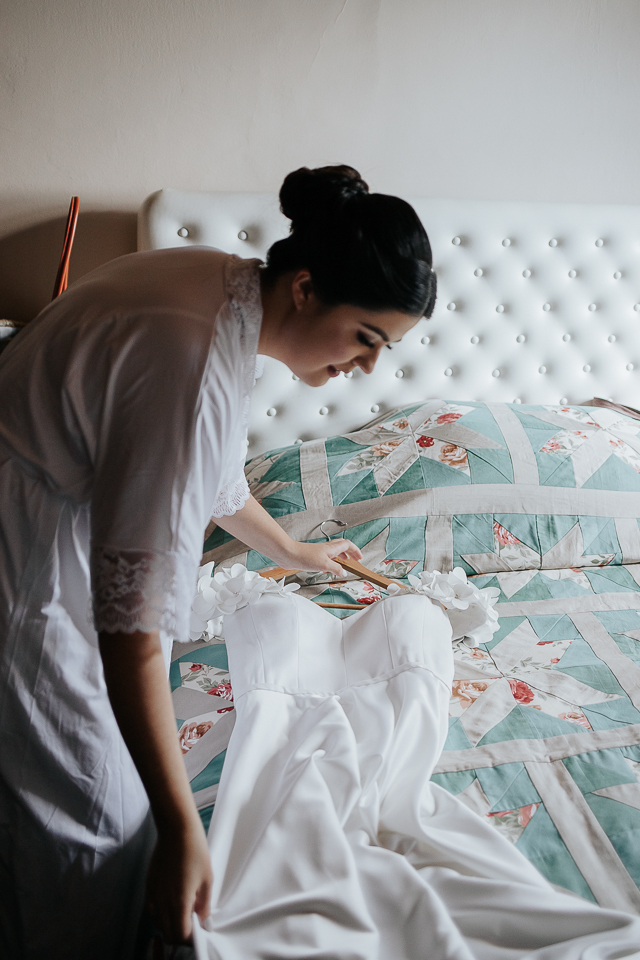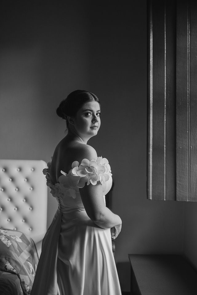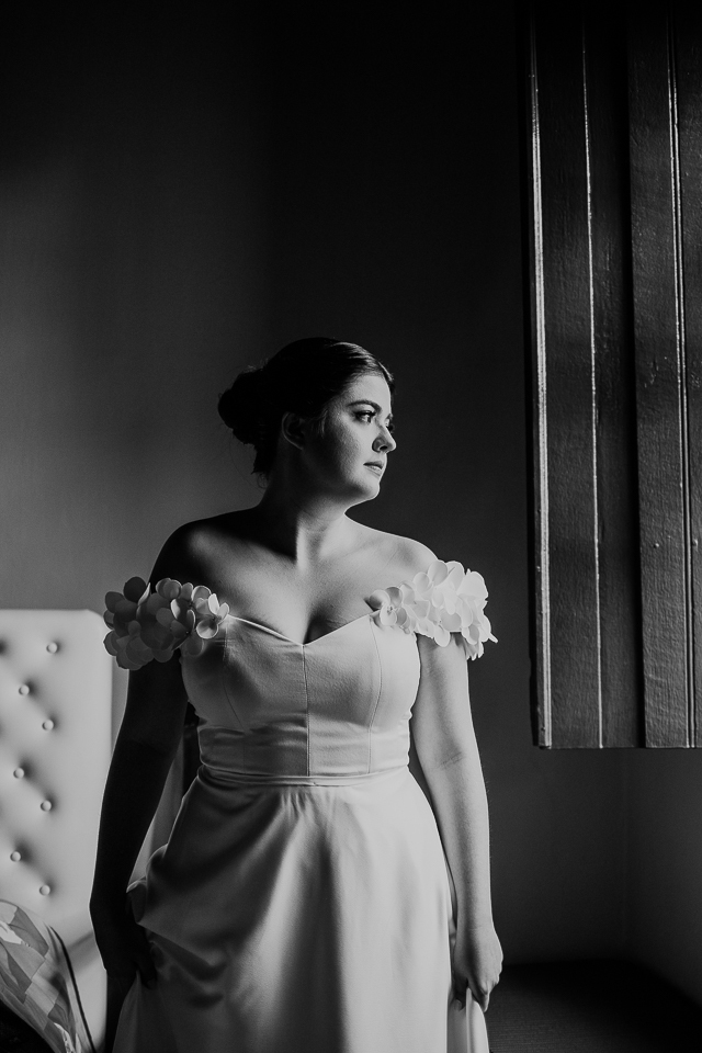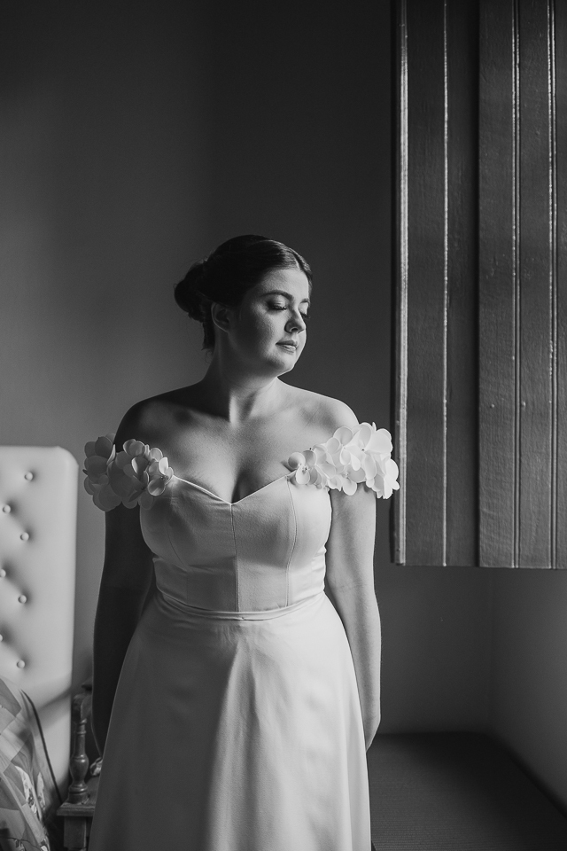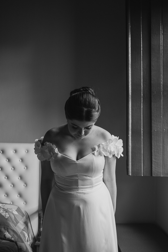 Eu me ofereci pra acompanhá-la ao quarto onde colocaria o vestido e, como acontece naturalmente, as mulheres se entendem em espaços íntimos também, falando a mesma língua do tempo e da poesia. A luz mágica da janela, me oferecida de bandeja pelos deuses, me permitiu fazer retratos bonitos da Mari, de um jeito singelo. Eu já estava completamente satisfeita com esse momento.