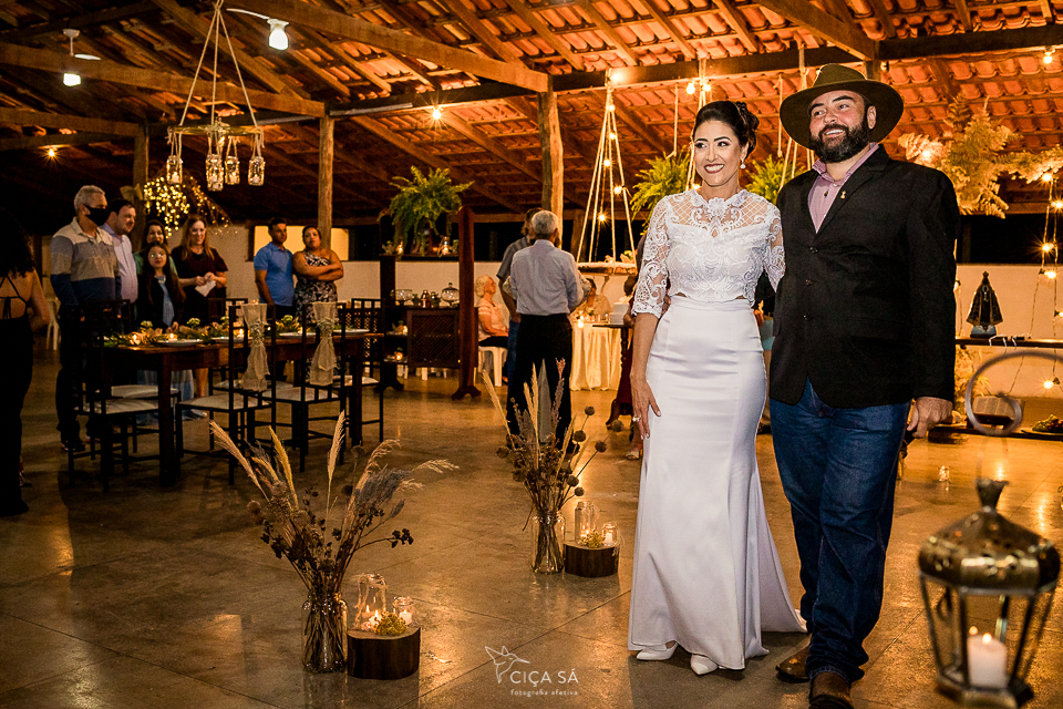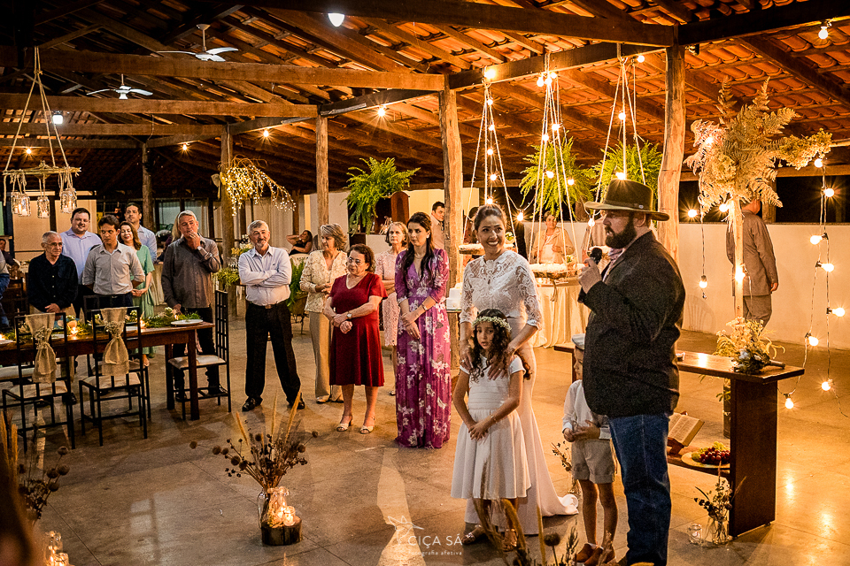 O casamento deles aconteceu na pandemia, sim, como muitos outros, mas (ou talvez "por causa disso"), foi uma cerimônia muito especial, com uma energia muito emocionada, de alegria, realização, gratidão, encontros... A ambientação do local escolhido foi toda feita pelos noivos e suas famílias, aproveitando tudo o que a natureza da região oferecia. Eu até publiquei um post em meu blog sobre esse capítulo em especial, de tão linda e inspiradora estava a decoração. Clique aqui procê ver!