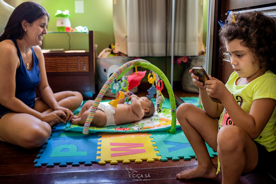 Quem está envolvido neste pequeno furacão que é a vida em família com crianças consegue fazer registros fotográficos aqui e ali, do jeito que dá, como o tempo permite, e na maioria das vezes quem fotografa não aparece, especialmente as mães. Quem é mãe e sabe o que eu estou dizendo, toca aqui! Estamos juntas! Por isso, o acompanhamento fotográfico profissional é tão importante! Um retrato fiel daquilo que se passa, com verdade, com humanidade, com toda a salada de sentimentos que faz parte intrínseca da nossa existência.