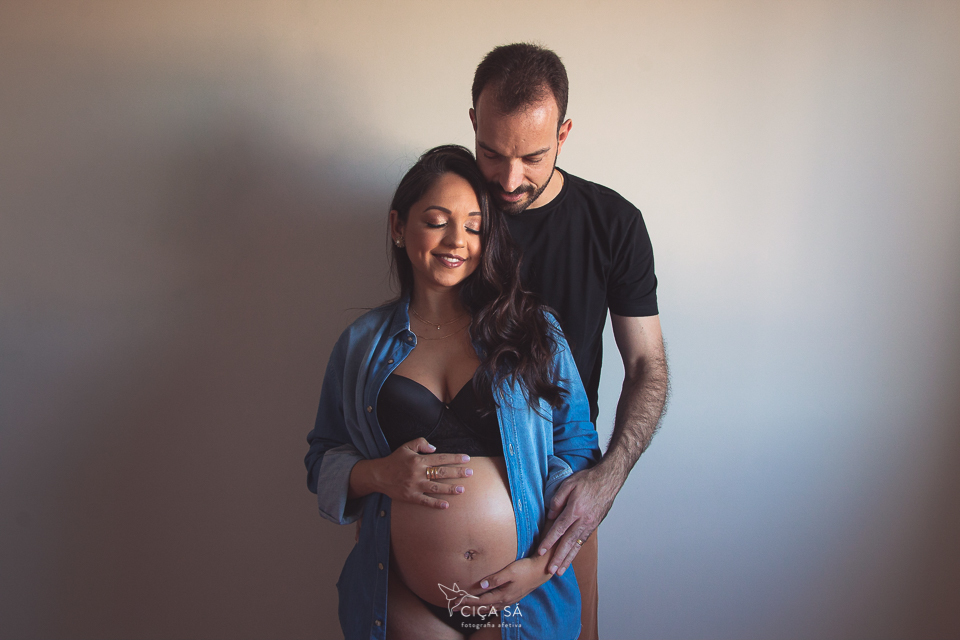 Nossa sessão de fotos foi íntima, suave, aconchegante como a luz que entrava pelo apartamento da vovó Sônia e acolhedora como o por do sol dourado do fim do dia. E estou certa de que o Guilherme sentiu tudo isso lá dentro da barriga de sua linda mamãe, ouvindo a voz do seu lindo papai e sentindo o amor dos dois...