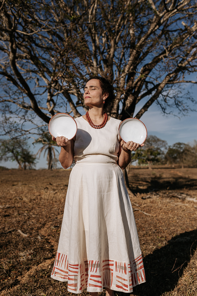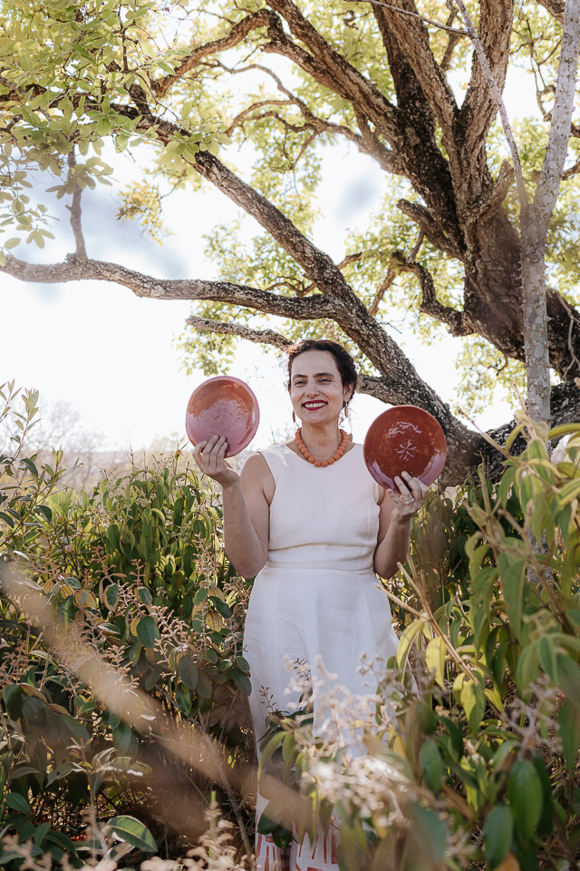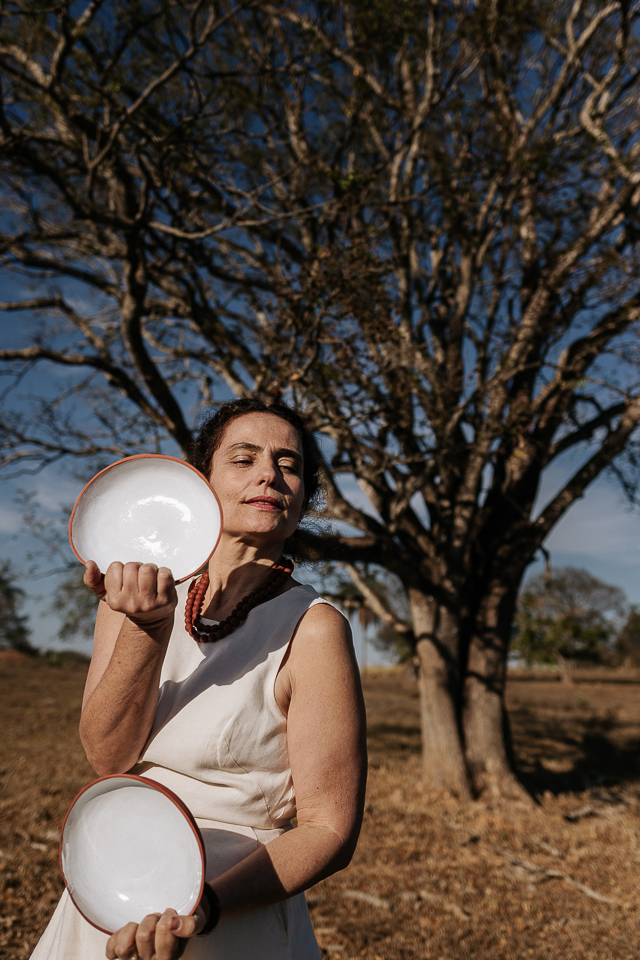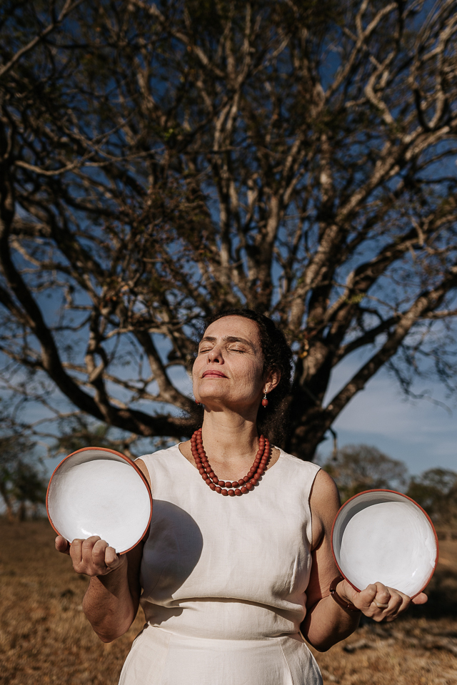 É pé na terra - o barro do cerrado, da qual é apaixonadamente feita - e também brisa e sol na cagaiteira. A cerâmica é utensílio, é arte, é adorno, é capricho, é criação, como um filhote, uma cria, uma criatura.